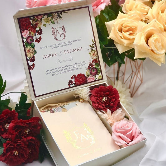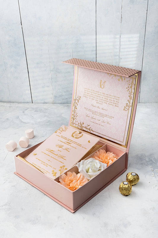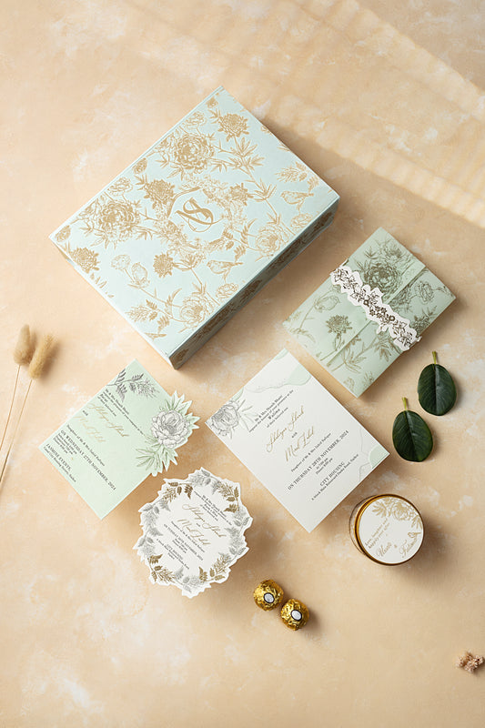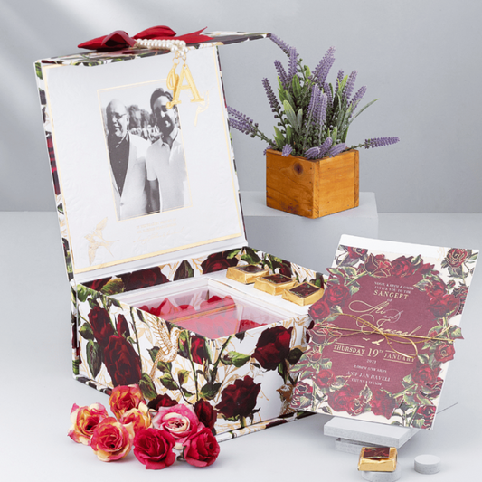 Choose our modern and Indian-themed boxed invitations to make a statement with your event announcements. Let the beauty of tradition and the allure of contemporary design come together to create an invitation suite that perfectly represents your celebration.